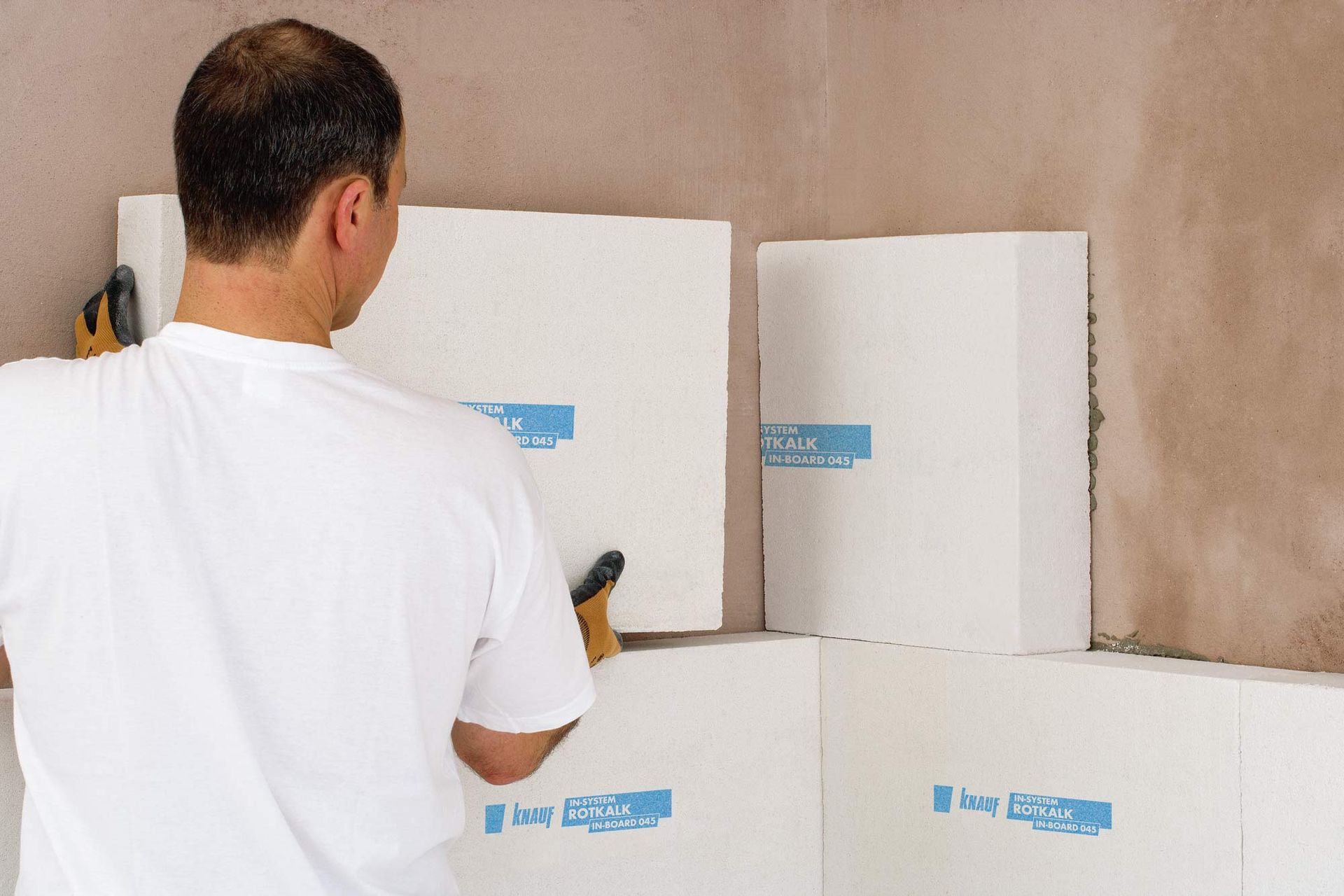 Perlit-Dämmplatten von Rotkalk (in-Board 045 TecTem), sorgen für gute Dämmung, bestes Klima und Brandverhalten (A1), sind stark alkalisch und somit schimmel-resistent und nicht zuletzt gut recyclebar. In Stärken von 5 bis 10 cm. Foto: Knauf