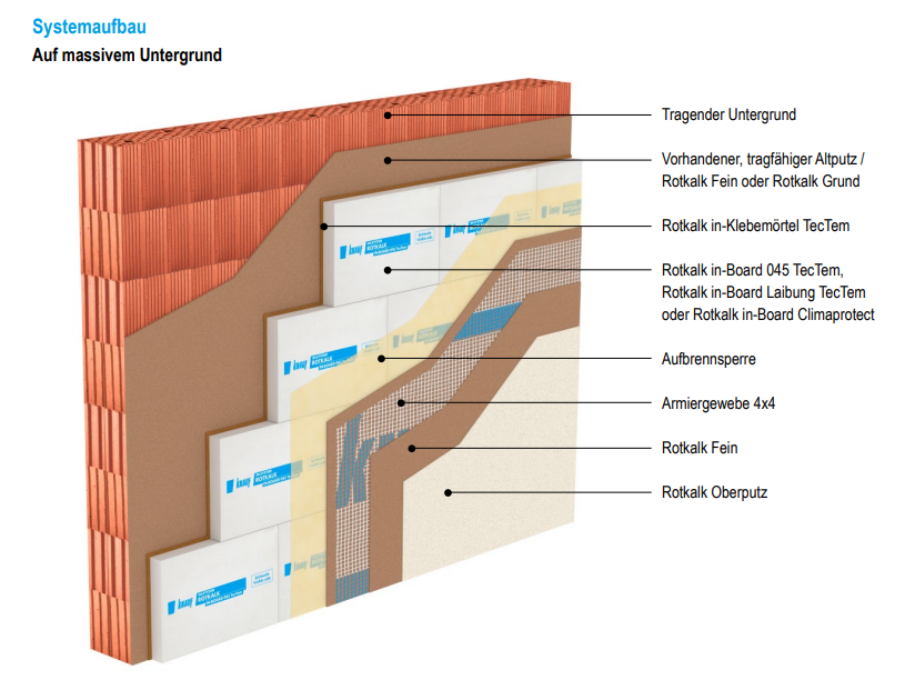 Wie eine Innendämmung aufgebaut ist, zeigt die Grafik am Beispiel des Rotkalk In-Systems: